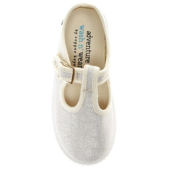 From Copper Key Adventure Wear, the Girls’ Bestee Washable Canvas T-Strap Sneakers feature: