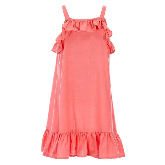 - Ruffled hem and neckline
