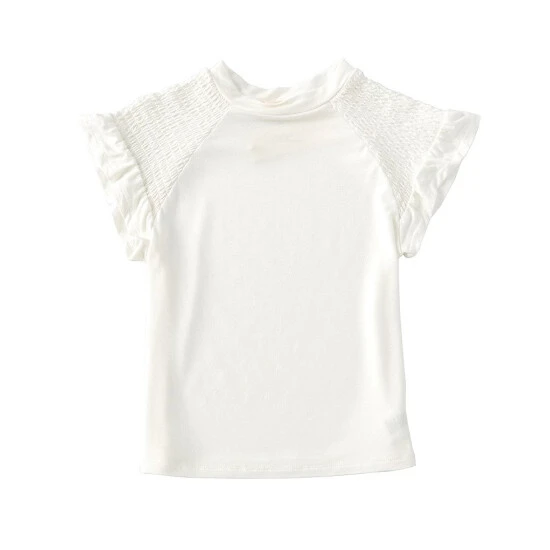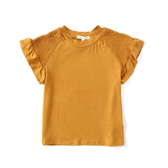 - smocked short sleeves with flutter trim