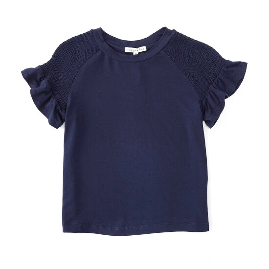 - Short ruffle sleeves with smocking detail