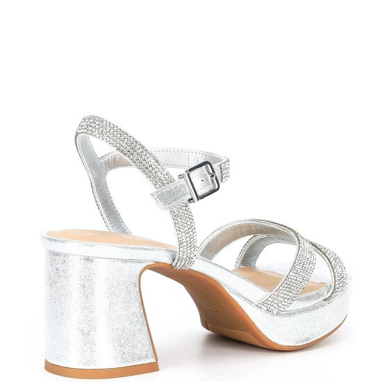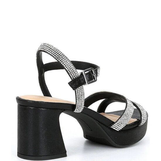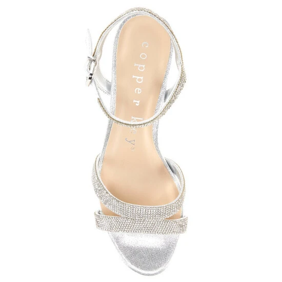 From Copper Key, the Celebrate Rhinestone Platform Dress Sandals feature: