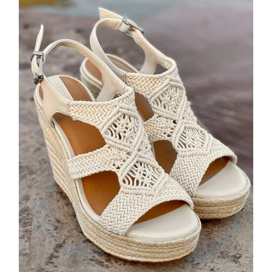 From Copper Key, the Dreamcatcher Macramé Espadrille Platform Wedges features: