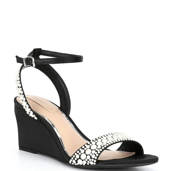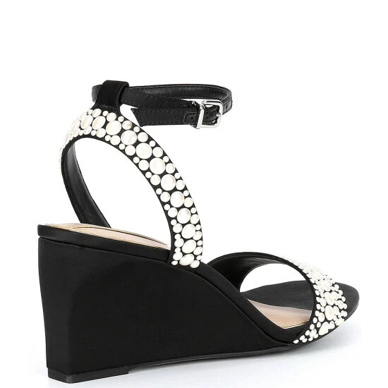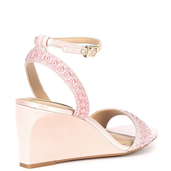- Satin upper with faux pearl embellishments