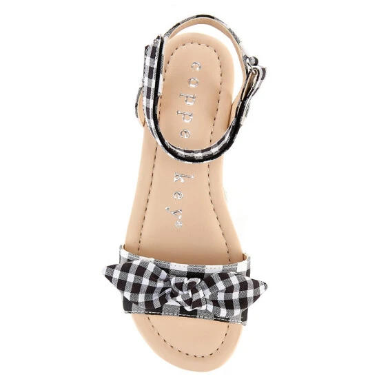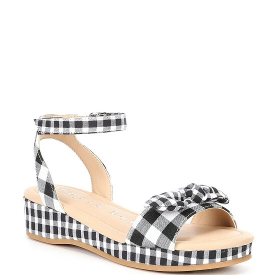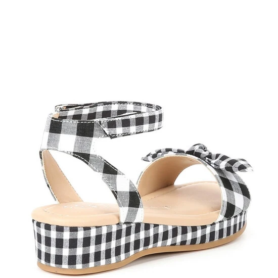 From Copper Key, the Girls’ Dearisst Eyelet Bow Gingham Flatform Wedges feature: