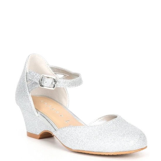 From Copper Key, the Girls’ Fancee Glitter Covered Wedge Heels feature: