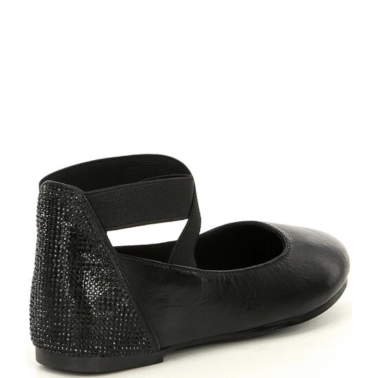 From Copper Key, the Girls’ Loviee Rhinestone Leather Ballet Flats feature: