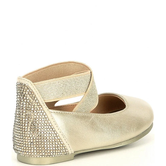 From Copper Key, the Girls’ Loviee Rhinestone Leather Ballet Flats feature: