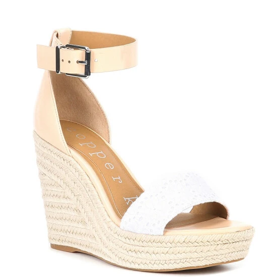 From Copper Key, the Hightide Ankle Strap Espadrille Platform Wedges feature: