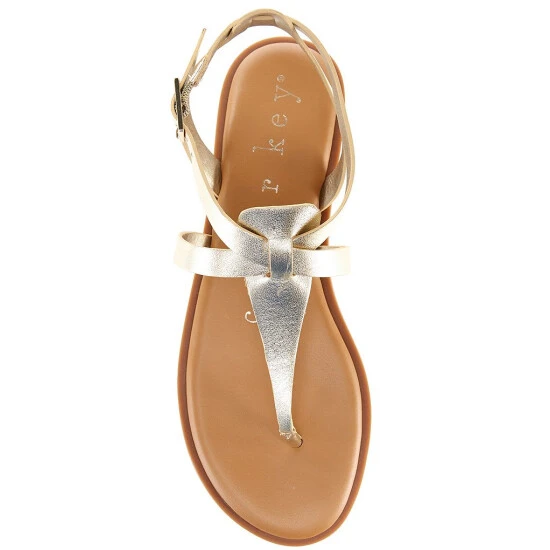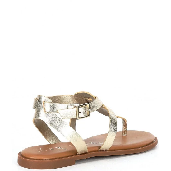 From Copper Key, the Metallic Sahara Slouch Leather Strappy Sandals feature: