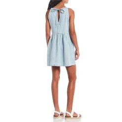 Buy ???? Copper Key Round Neck Tie Back Brushed Chambray Swing ???? Dress Light Wash ????