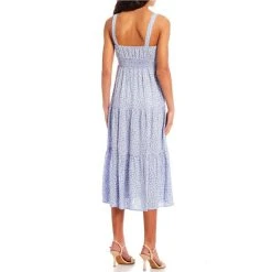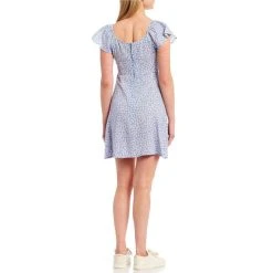 Budget ✔️ Copper Key Flutter Sleeve Tie Front Ditsy Floral Printed ???? Dress Blue White ????