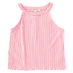 Hot Sale ???? Copper Key Big ???? Girls 7-16 Mockneck Ribbed Lettuce Hem Tank Top Pink ????